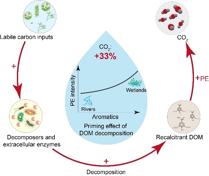 溶解性有机质(DOM)降解是内陆水体碳排放的关键过程,其强度可能受活性(易降解)DOM输入的调控(即激发效应)。然而,与土壤相比,内陆水体DOM降解的激发效应研究还非常有限。在全球变化背景下,藻华爆发和水体褐化将分别加强内源活性DOM和陆源惰性DOM的输入,水体DOM的激发降解会如何变化呢?