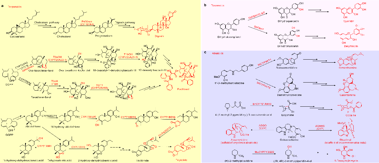 CYPs在三类重要天然产物(萜类、黄酮和生物碱)生物合成中的研究进展