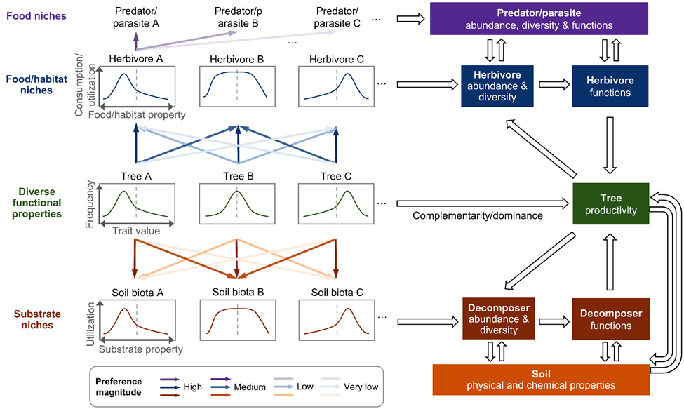 树木功能多样性对生态系统功能影响在不同营养级之间的多路径机制