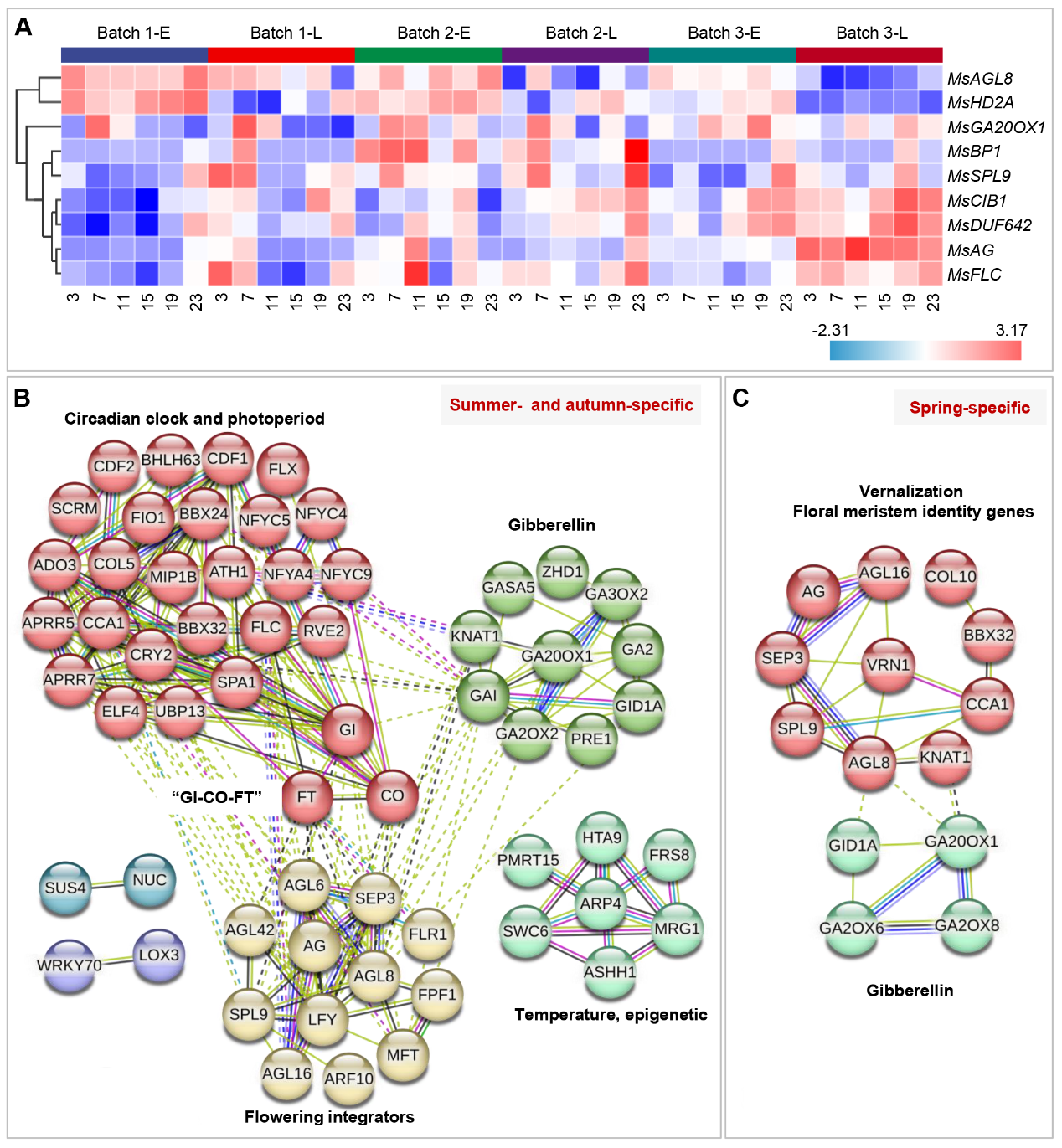 基于季节和昼夜转录组图谱鉴定调控紫花苜蓿开花时间的基因网络