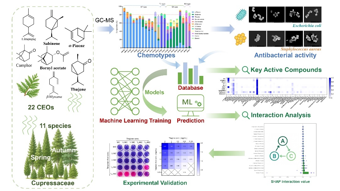柏科植物精油的化学特征、抗菌活性及机器学习预测的整合研究